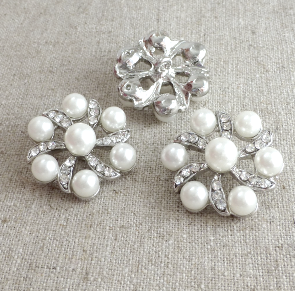 Rhinestone and Faux Pearl Shank Silver Button Pack of 2